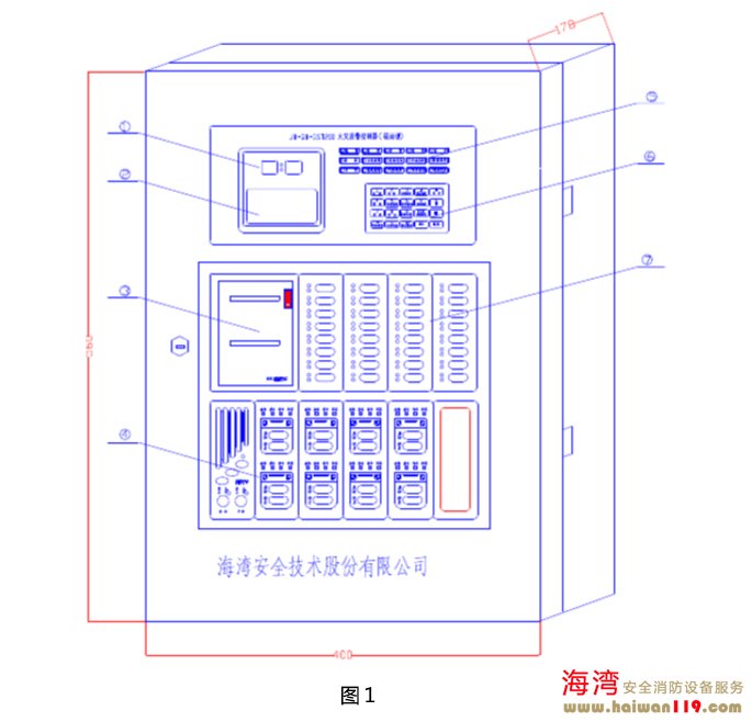 JB-QB-GST200火災(zāi)報警控制器(聯(lián)動型)的外觀示意圖及內(nèi)部結(jié)構(gòu)圖如圖1、圖2所示: