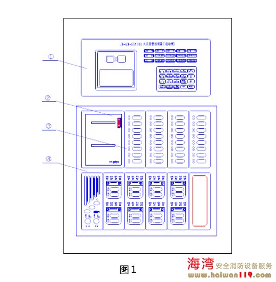 上圖說明: ①顯示操作區       ②打印機面板       ③總線制控制區     ④多線制控制區