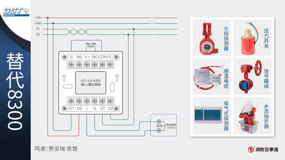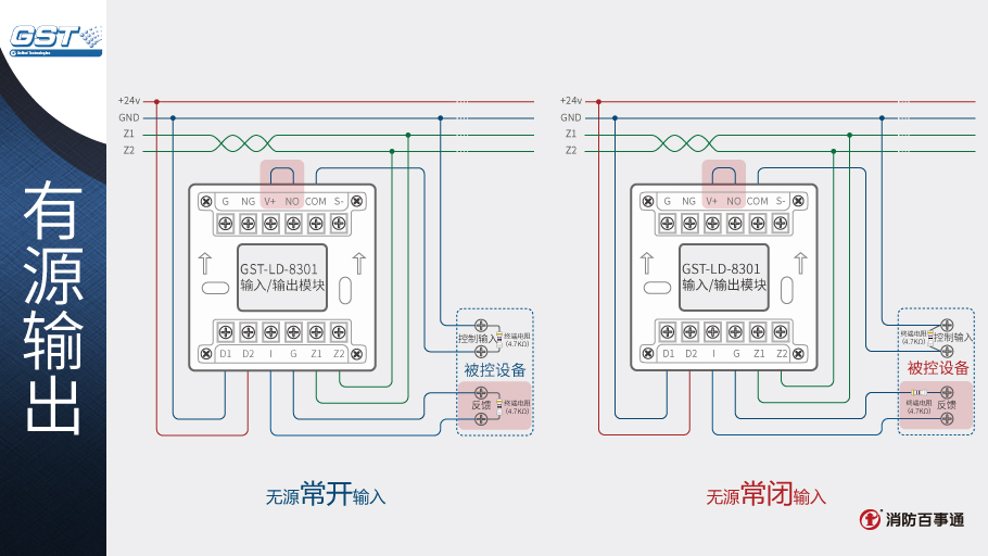 1、由于聲光、警鈴等設備無反饋信號,故模塊的反饋端I、G接4.7KΩ終端電阻。